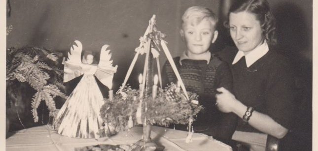 Entstanden ist es vier Jahre nach Beendigung des Zweiten Weltkrieges und strahlt auf anrührende Weise Frieden und Hoffnung aus. Zu sehen sind wesentliche Elemente des Weihnachtsbrauchtums. Der Adventskranz, dessen erste Kerze am ersten Sonntag im Advent und dessen vierte Kerze am letzten Sonntag im Advent, dem Sonntag vor Weihnachten entzündet wird. Er stellt ein Symbol der Vorweihnachtszeit dar. Der Weihnachtsbaum oder Weihnachtsstrauß, der am Ende der Adventszeit, dem Heiligen Abend entzündet wird. Die gefüllte Plätzchenschale, die darauf verweist, dass die Fastenzeit mit Beginn der Weihnachtszeit beendet ist. Und dann ist da noch der Rauschgoldengel, dessen Existenz an eine anrührende Geschichte aus Nürnberg erinnert – Ursprung des „Nürnberger Christkindels -, ein strahlender Mittelpunkt der Szenerie.
