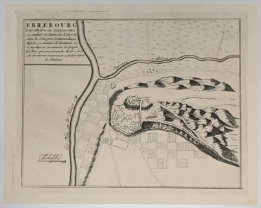 Gezeigt wird der Grundriss der Festung Ebernburg auf einem Bergrücken zwischen der Nahe und der Mündung der Alsenz in die Nahe. Die Flüsse tragen ebenfalls französische Bezeichnungen: Le Nau oú la Nave R (Nahe) und Ruisseau d'Alexem (Alsenz).