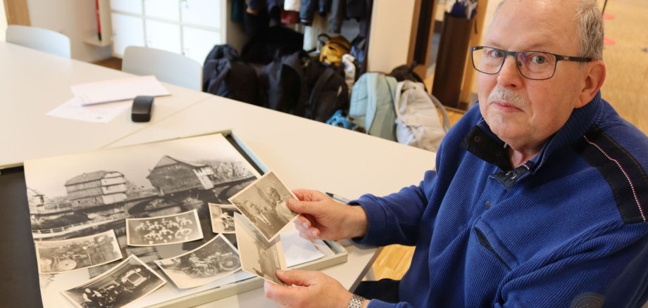 Foto oben: Als "Bote" brachte Rolf Schaller die Baruch-Fotos als Geschenk von Hanns Kirchhof (93) ins Stadtarchiv