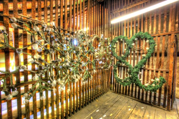 Im Rahmen des Projekts „ehrenamtlicher Stadtfotograf“ dokumentierte Achim May 2018 für das Stadtarchiv Bad Kreuznach das von der Verwaltung aufgegebene ehemalige Ordnungsamt am Eiermarkt. Auf dem Speicher fand er die hier abgebildeten, ordentlich aufgehängten und leicht in die Jahre gekommenen Lichterketten vor. Aufgrund der Komposition des Bildes, dem Zusammenwirken der verschiedenen, ja konträr zueinanderstehenden und ineinanderfließenden Strukturen und der farblichen Verfremdung des Vorgefunden, muss der Betrachter genau hinsehen, um zu erkennen, was das Foto überhaupt abbildet. Für welchen Anlass wurden die Lichterketten genutzt? Für Weihnachten etwa? Die Nachfrage beim früheren Ordnungsamtsleiter Manfred Schäfer ergab, dass, seiner Erinnerung nach, solche Illu-Lichterketten aus Anlass des Festes rund um die Naheweinstraße angeschafft wurden und zur Ausschmückung der großen Holzpergola dienten, die auf dem Eiermarkt aufgebaut wurde.