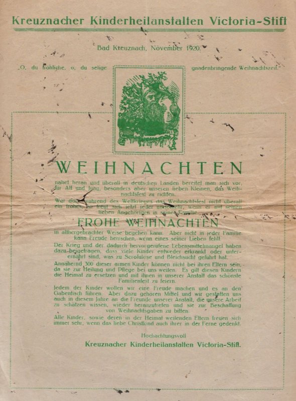 „Jetzt naht sie wieder, die fröhliche, selige Weihnachtszeit. Wenn die herrschenden Verhältnisse auch schwer auf uns lasten, unser liebes, deutsches Weihnachtsfest trägt doch immer wieder seinen Zauber in unsere Herzen.“