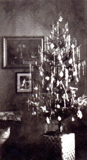 Als Fritz Senner (1885-1976) sein Baum-Bild ,schoß‘, hatte er dafür einen anderen, einen besonderen Grund. Man schrieb das Jahr 1941, Deutschland führte Krieg, und der einzige Sohn, Fritz junior (1921-2015), war als Soldat der Luftwaffe von Jüterbog ins verbündete Italien verlegt worden. Weihnachten mußte er also fern der Heimat feiern, im sizilianischen Catania. An Heiligabend schrieb ihm sein Vater: „Der Baum ist genau so schön ausgefallen wie jedes Jahr, nur ein klein wenig kleiner, aber doch schön und ich kann es eben nicht anders, er muß immer so sein, daß man seine Freude hat und Dir zu Liebe habe ich besondere Sorgfalt verwandt und in Deinem geistigen Auge kannst Du ihn Dir vorstellen. Er steht am selben Platz, habe nach Möglichkeit wieder einen großen Teil unseres Schmuckes verwandt und es leuchteten 10 Kerzen am Baum! Denkst Du noch daran an den heiligen Abend von 1940, wo die zwei Italiener vom Eisenbahnbauzug auf kurze Zeit bei uns weilten unterm brennenden Lichterbaum, und nun bist Du selbst in diesem Lande! Wenn ich anführte, daß ich den größten Teil unseres Schmuckes verwandt habe, so muß ich noch hinzufügen, daß ich alle Glöckchen daran befestigt habe an der Spitze angefangen, symbolisch, daß sie möglichst bald den Frieden einläuten möchten und die alte Verheißung komme: ,Friede auf Erden!‘“