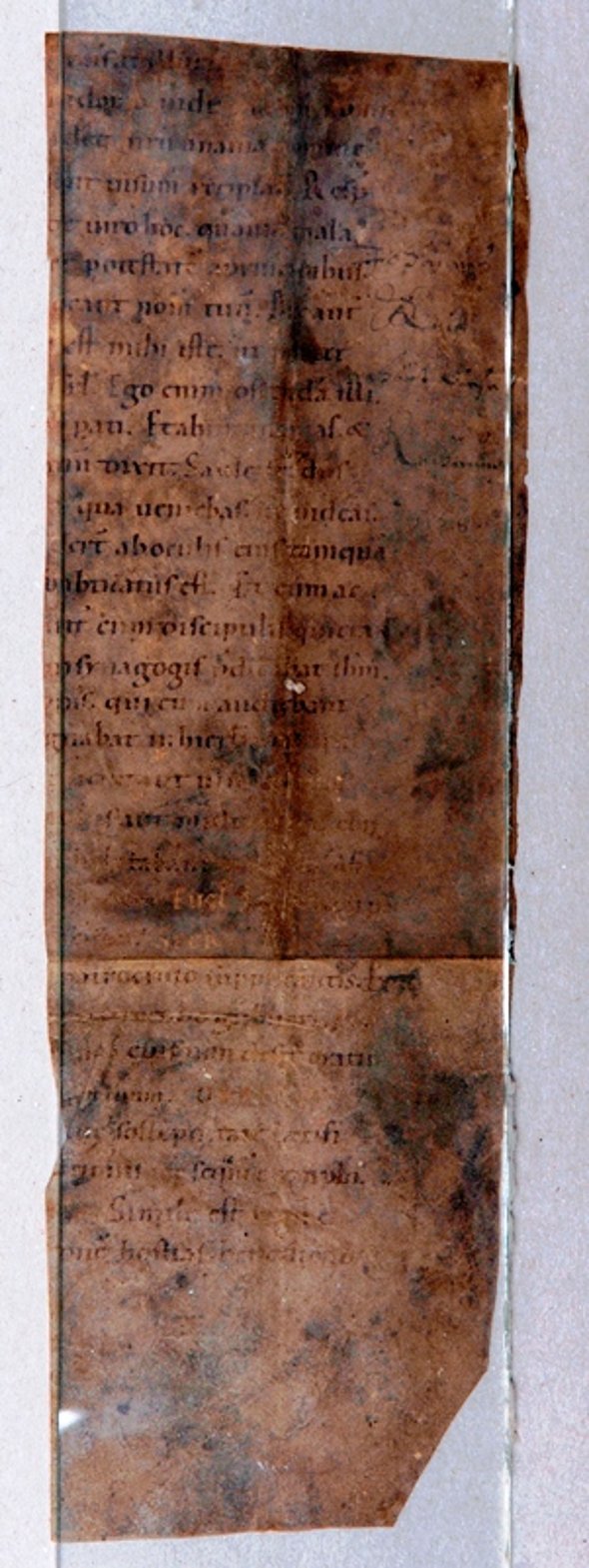 Das Fragment, es ist das älteste Fragment einer Handschrift im Bestand des Stadtarchives, wurde von Dr. Brigitte Pfeil zweifelsfrei dem zweiten Drittel des 11. Jahrhundert zugeordnet. Sie begründet dies mit den Buchstabenformen, die noch „sehr reguliert erlernt und reproduziert wurden“. Als Entstehungsort der Handschrift vermutet sie ein deutsches Skriptorium: eine mittelalterliche Klosterschreibstube.