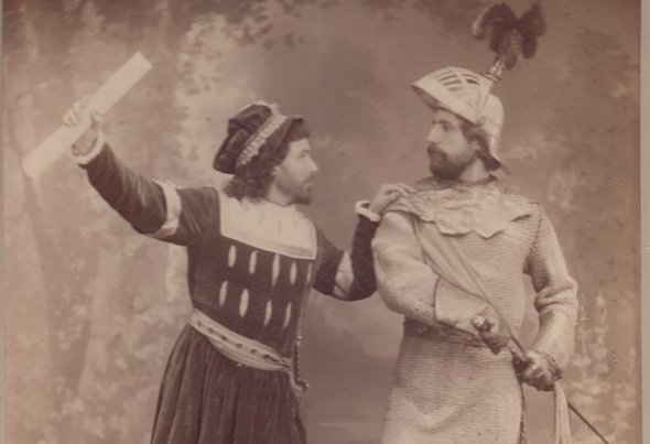 Franz von Sickingen ist eng mit der Ebernburg und diese durch Ulrich von Hutten mit dem Begriff „Herberge der Gerechtigkeit“ verbunden. Zu Beginn des 19. Jahrhunderts entstanden nationalromantische Gefühlsregungen begeisterter protestantischer Patrioten in Kreuznach und Umgebung. In den 1830er-Jahren äußerte sich dies etwa in der Umbenennung des Kehrenbachtals in Huttental. Die Verehrung für Sickingen und Hutten gipfelte in dem 1888/89 am Fuß der Ebernburg errichteten monumentalen Hutten-Sickingen-Denkmal, nach einem Entwurf Carl Cauers, mit dem sie als „Vorkämpfer Deutscher Einheit und Größe“ geehrt wurden. Das Denkmal wurde 1889 enthüllt. Anlässlich dieses Ereignisses wurde „Hutten und Sickingen“ als „dramatisches Festspiel“ von August Bungert aufgeführt. Das Foto zeigt zwei Schauspieler in Pose, die dem Denkmal nachempfunden ist.