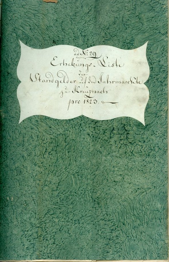 1823 fand vom 17. bis 19. August auf der Pfingstwiese der Kreuznacher Jahrmarkt statt. Auf 42 von insgesamt 72 Blättern der „Erhebungs=Liste der Standgelder auf dem Jahrmarkte zu Kreuznach pro 1823“, die von Oberbürgermeister Johann Franz Xaver Buss (1790-1883) paraphiert wurde, sind alle Beschicker des Marktes verzeichnet: insgesamt 168 Personen. Dieses Register ist eines der wenigen Zeugnisse aus der Frühzeit des Kreuznacher Jahrmarktes. Es vermittelt präzise Informationen über die Beschicker (Vor- und Zuname), deren Herkunftsort und ihr Angebot.
