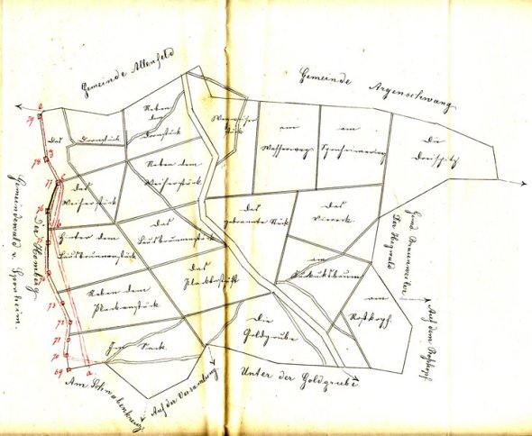 Zeichnung des ehemaligen Stadtwaldes "Gauchsberg"