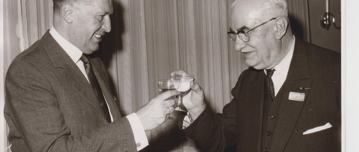 Auf die frisch besiegelte Städtepartnerschaft stießen an: Oberbürgermeister Gerhard Muhs und sein Bourger Amtskollege Bürgermeister Amedée MercierIn der feierlichen Stadtratssitzung am 29. Juni 1963, in der die Partnerschaft offiziell besiegelt wurde, sprach Oberbürgermeister Gerhard Muhs von einer „Sternstunde in der Geschichte des Bad Kreuznacher Stadtrates.“ Bürgermeister Amedée Mercier bedankte sich und rief: „Es lebe Bad Kreuznach, es lebe die Freundschaft zwischen Rheinland-Pfalz und der Bresse. Zum ersten Gegenbesuch reiste ein Konvoi mit acht Fahrzeugen im Mai 1964 nach Bourg. Auch die Bad Kreuznacher erwartete ein herzlicher Empfang mit einem großen Programm. Am letzten Besuchstag ließen Heinrich Stephan und Stadtratsmitglied Willi Hilsbos 400 Reisetauben mit einer Sympathie-Botschaft der Stadt Bourg-en-Bresse ins heimatliche Bad Kreuznach starten.