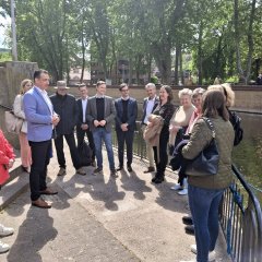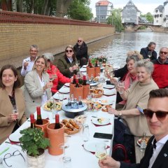 Die Delegation genoss zudem eine Rundfahrt auf der Nahe zusammen mit Mitgliedern des Partnerschaftsausschusses und des Fördervereins für Städtepartnerschaften. Durch den kundigen GuT-Geschäftsführer Michael Vesper lernten die Gäste auf der Bootsfahrt die Geschichte der Stadt und die Hintergründe des Bad Kreuznacher Hochwasserschutzes kennen, der sich seit mehr als 20 Jahren bewährt hat. Das Weinanbaugebiet Nahe und die Besonderheiten dieser traditionsreichen Weinregion wurden durch Naheweinmajestät Laura Ludwig kurzweilig vermittelt.