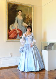 Eher eine „Seelenverwandtschaft“ verbindet Malika Elise Goldt mit Prinzessin Amalie von Anhalt-Dessau. 2014 hat sie erstmals die Führung „Prinzessin Amalie von Anhalt-Dessau erzählt aus ihrem Leben“ angeboten. Malika Elise Goldt ist in Frankreich geboren und aufgewachsen und hat u.a. in Moskau Slawistik studiert. Sie lebt in Bad Kreuznach und engagiert sich seit langem auch als Stadtführerin. Sie ist fasziniert von der Prinzessin, eine für ihre Zeit außergewöhnliche Persönlichkeit, die ein unabhängiges und selbstbestimmtes Leben führte. Malika Elise Goldt schlüpft in die Rolle der Amalie und führt stilgerecht in der Kopie des Kleides, das die Prinzessin auf dem um 1840 entstandenen Gemälde von Georg Lisiewski im Museum Schlosspark trägt, ihre Gäste durch das Schlösschen und den Park. Die Kopie des Kleides wurde im Atelier Marlis Buse, Wuppertal angefertigt.
