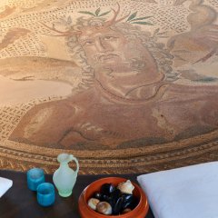Hauptattraktion sind die beiden aus der Mitte des 3. Jahrhunderts stammenden Mosaikböden, die in der benachbarten römischen Villa gefunden wurden.