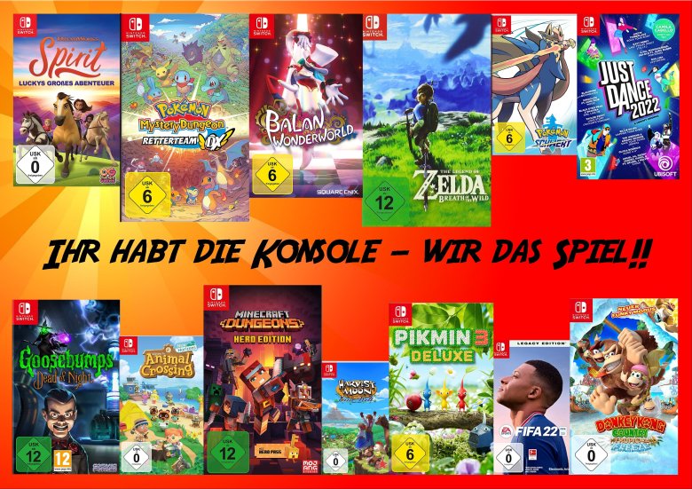 Von bekannten Nintendo-Klassikern wie Mario Odyssey oder Super Smash Bros bis hin zu Just Dance und Minecraft sind die unterschiedlichsten Genres vertreten.