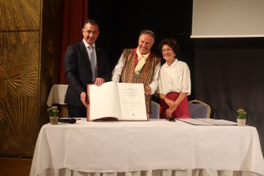 Zu der feierlichen Veranstaltung gehörte auch der Eintrag in das Gästebuch der Stadt Bad Kreuznach.