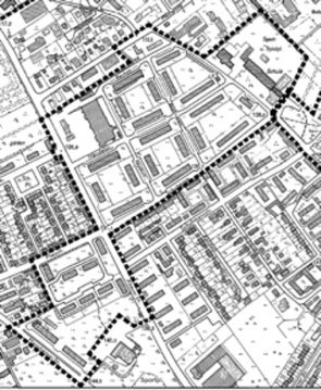 - Plan 1 zur Satzung mit den Gebieten "Rose Barracks, Housing II (Händelstraße, Schubertstraße und PX) ,Housing III (Steubenstraße, Karl-Schurz-Straße)“