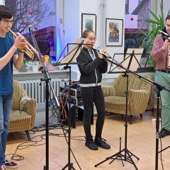 Für das leibliche Wohl wurde eine Auswahl an Süßem und Deftigen angeboten, wie Reibekuchen, türkische Pizza, Heringssalat sowie türkischer Mokka, Tee, Glühwein und Kinderpunsch. Abgerundet wurde die stimmungsvolle Atmosphäre durch Klavier- und Chormusik.