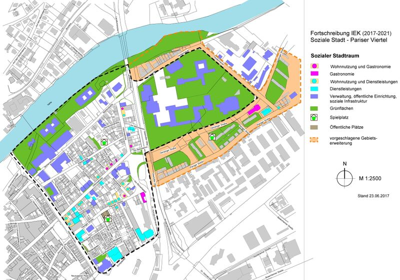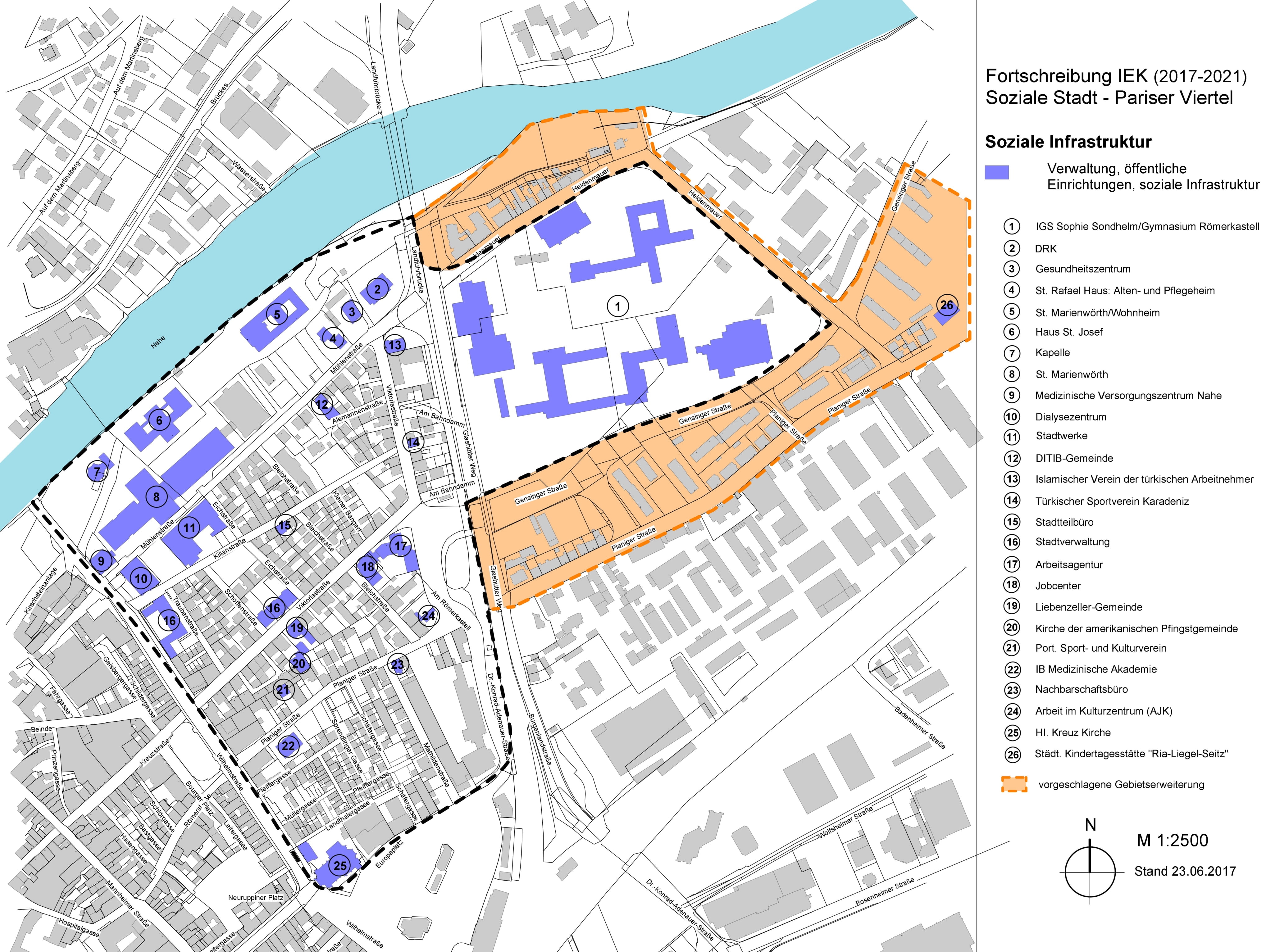 Mit der Evaluation 2017 wurde eine Erweiterung der Gebietsabgrenzung sowohl inhaltlich, als auch aus Gründen der Zweckmäßigkeit empfohlen. Das geeignete Erweiterungsgebiet umfasst circa 8 Hektar und ergänzt das bisherige Fördergebiet im Nordosten, sodass das Schulumfeld und öffentliche Bereiche des Naheufers ebenso zum Programmgebiet gehören wie weitere Abschnitte der verkehrsreichen Straßen Planiger Straße und Gensinger Straße.