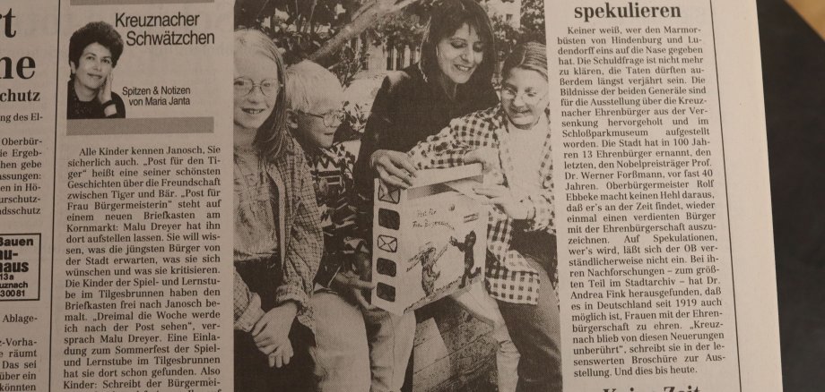 Foto: Im Stadtarchiv gefunden: Über den Kinder-Briefkasten von Malu Dreyer berichtete der Oeffentliche Anzeiger am 2./3. September 1995 in seinem „Schwätzchen“.