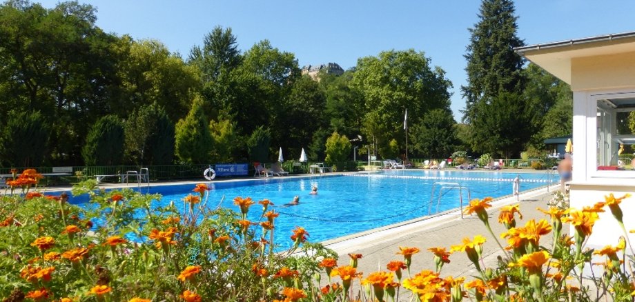 Foto: Das Mineral-Thermal-Freibad in Bad Münster ©Schwimmbadgenossenschaft Rheingrafenstein
