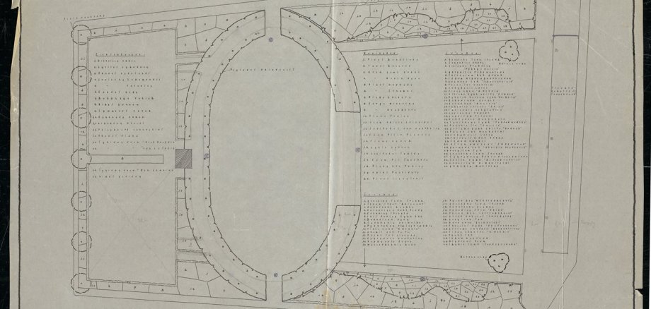 Der vorliegende handsignierte „Bepflanzungsplan“ für einen „Platz in Bad Kreuznach“ wurde im November 1933 von dem aus Herford stammenden Gartendirektor der Stadt Essen, Rudolf Korte (1878-1950), angefertigt. Die Stadt plante nach Abbruch des Hotels Oranienhof eine gärtnerische Ausgestaltung des Terrains, woraufhin (Ober-)Bürgermeister Dr. Robert Fischer (1887-1966) nach Aussage von Korte Kontakt mit ihm aufnahm. Dieser hatte sich spätestens mit der „Gruga“, der „Großen Ruhrländischen Gartenbauausstellung“ von 1929, überregional Verdienste erworben.