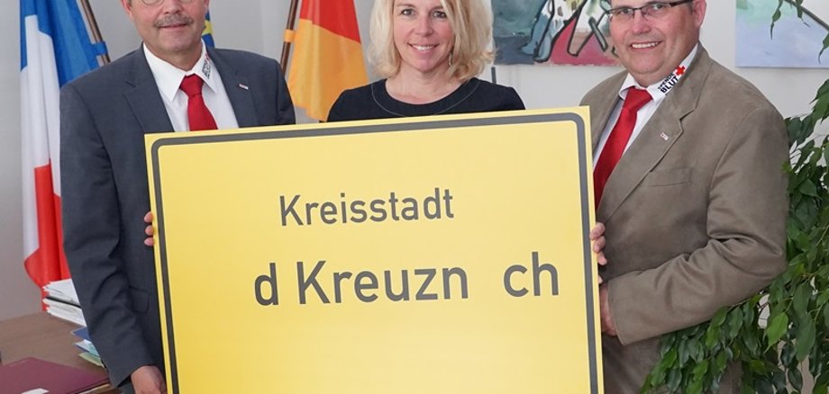 Foto v. l.: Dr. Andreas Opitz (ärztlicher Geschäftsführer beim Blutspendedienst), Oberbürgermeisterin Dr. Kaster-Meurer, Jörg Backhaus (Leiter Öffentlichkeitsarbeit beim Blutspendedienst).