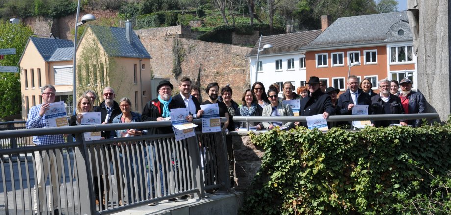 Foto: Freuen sich auf ein schönes und gut besuchtes Brückenfest III: OB Dr. Heike Kaster-Meurer, Fest-Koordinator Hansjörg Rehbein (erster von links), die Sponsoren Stadtwerke Bad Kreuznach, Sparkasse Rhein-Nahe und Gewobau Bad Kreuznach sowie die Akteure des Fests.