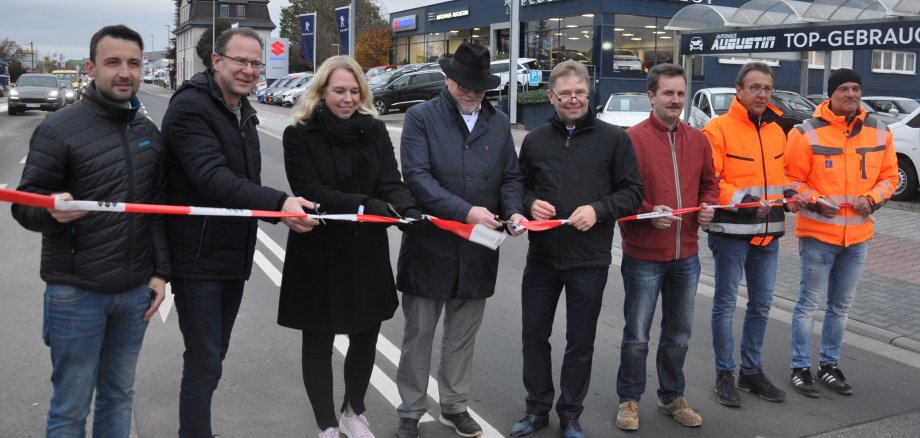 Großes Foto: Jetzt kann der Verkehr wieder normal fließen: OB Dr. Heike Kaster-Meurer schnitt mit den Projektbeteiligten das Band bei der offiziellen Verkehrsfreigabe am Mittwoch durch.