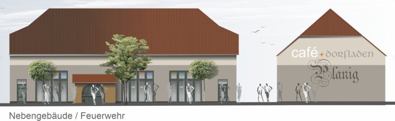 Daneben ist die Instandsetzung des Ensembles Mainzer Straße 85 (Rathaus Planig mit nebenstehender Scheune) mit 400.000 Euro kalkuliert. Die Gewobau ist seit 2018 Eigentümerin beider Gebäude und beabsichtigt, weiteren Wohnraum sowie einen Dorfladen als „Zentrum für Begegnung“ unterzubringen. Im Zuge der Sanierung soll auch der Dorfplatz umgestaltet werden. Beide Häuser, so Seeger, müssten jedoch umfassend saniert werden – teilweise bestehe Denkmalschutz. So passen beispielsweise die nachträglich eingebauten, modernen Industriefenster nicht zur barocken Scheune. Ein erster Gestaltungsentwurf sieht eine Dreigliederung mit Toren statt Türen vor. Da es keine Pläne von den Gebäuden gibt, bittet die Gewobau im Namen des beauftragten Gestalters Peter Zoernack um Fotomaterial aus der Bevölkerung.