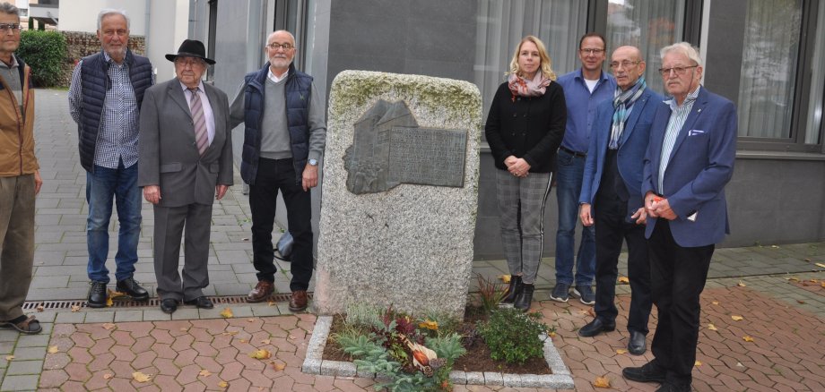 Foto: Bereits in den ersten Tagen hat das kleine Beet vor dem Gedenkstein in der Kurhausstraße für mehr Aufmerksamkeit gesorgt. Er ist auch eine Mahnung vor den Gefahren des leider erstarkten Antisemitismus in Deutschland, sind sich die Spender des Beetes mit dem Initiator Hans-Hermann Lipp (4.v.l.) , Nikolaus Blättermann (3.v.l.) und Dr. Heike Kaster-Meurer einig.