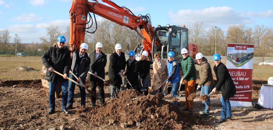 Foto: Oberbürgermeisterin Dr. Heike Kaster-Meurer (sechste von rechts) und Wirtschaftsdezernent Markus Schlosser (rechts) waren beim Spatenstich dabei. Foto: Öffentlicher Anzeiger