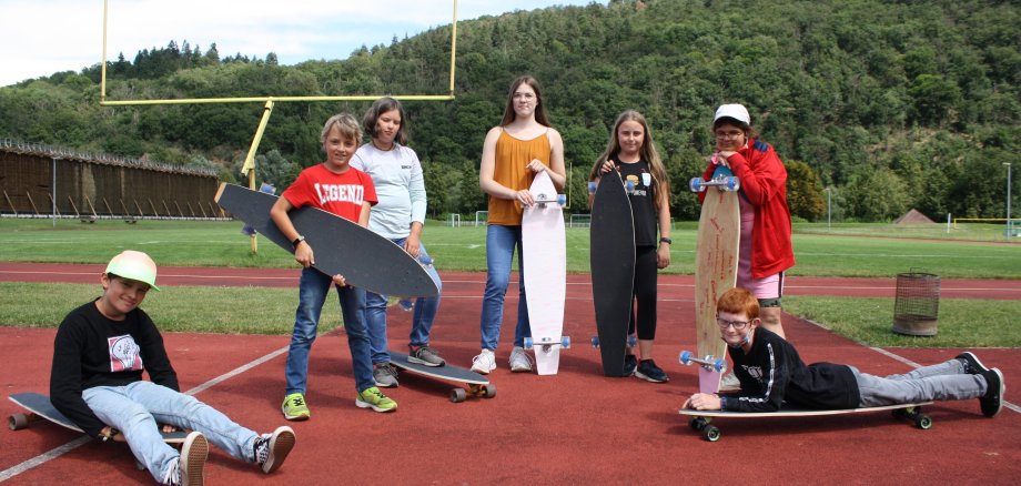 Das kleine und zugleich große Highlight war der Bau von eigenen Longboards - eigens hergestellte Boards, die mit viel Aufwand, Liebe und Arbeit hergestellt wurden. Vom Aussuchen des Holzes, Zusägen, Verleimen, Verstärken bis hin zum endlichen Schleifen, Anbringen des Griptapes, um dann final die Rollen zu befestigen, war ein langer aber erfolgreicher Weg. Die ersten Testfahrten waren schon sehr vielversprechend und sicher rollt das ein oder andere Brett mal in Bad Kreuznach vorbei. Zu guter Letzt wurden sie von den Erbauerinnen und Erbauern bemalt und damit unverkennbar gemacht.