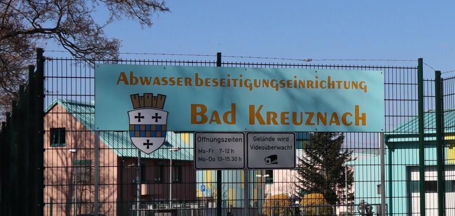 Archivfoto (2020): Schild der Abwasserbeseitigungseinrichtung der Stadt Bad Kreuznach an der Lindenmühle