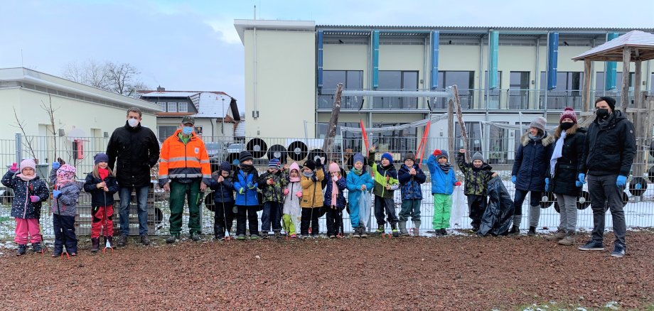 Ortsvorsteher Mirko Kohl und das Leitungsteam der Einrichtung wurden in das Projekt einbezogen. Ebenso Georg Bürger und seine Mitarbeiter vom Bauhof, die die Kinder mit Zangen und Müllsäcken ausstatteten, um die Umgebung zu säubern.