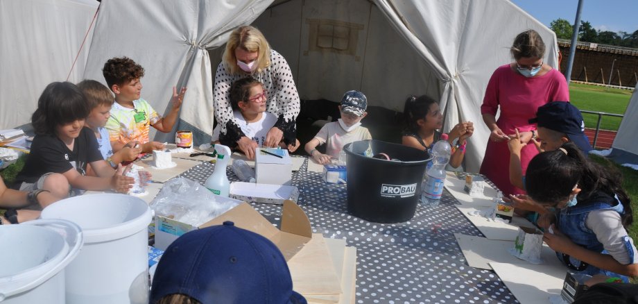 70 Kinder im Alter von sechs bis 13 Jahren werden noch bis 6. August im Salinental betreut. Wegen der Corona-Schutzbestimmungen musste man die Zahl, üblich sind 200, reduzieren. Von einer prächtigen Stimmung konnte Danielle Schulz, die Feriendorfleiterin, den Gästen berichten. Noch harmonischer als in den Vorjahren, gab es bislang nicht die üblichen, harmlosen Reibereien zwischen den Kindern, ein Indiz dafür, wie froh alle sind, auch die 14 Betreuerinnen und Betreuer. Das Angebot ist wie gewohnt sehr abwechslungsreich: Handwerkliches und Kreatives, Sport, auch Denksport wie Großfeld-Schach. Die Hockeyabteilung des VfL Bad Kreuznach bietet „Schnuppertraining“ an.