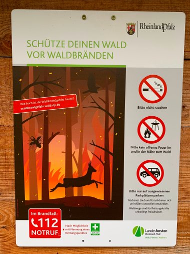 Fotos: Waldbrandschild, Foto: Landesforsten Rheinland-Pfalz / Forstamt Soonwald