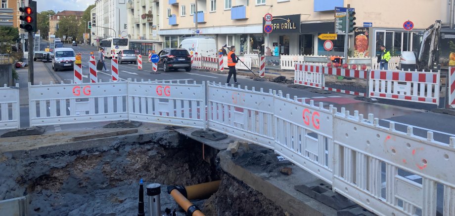 Foto: Die Baustelle im Bereich Bourger Platz, Wilhelmstraße, Planiger Straße ist wegen der Arbeiten am Wassernetz der Stadtwerke notwendig.
