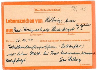 Den Text und Postkarte und Auszüge aus dem Brief, den Anna Hellwig an Else Kirschner am 18. Januar 1945 schrieb, verlas Oswald Kirschner bei einem Gedenkgottesdienst zum 75. Jahrestag des Kriegsendes. Beide Dokumente – Brief und Postkarte - schenkte er nun dem Stadtarchiv, wofür sich Stadtarchivarin Franziska Blum-Gabelmann herzlich bedankte. Es sei von großer Bedeutung für die Stadtgeschichte, Zeugnisse jener Zeit aus der Bürgerschaft zu bekommen. Das gilt besonders von Fotos, Tagebucheintragungen, Brief, Postkarten etc.