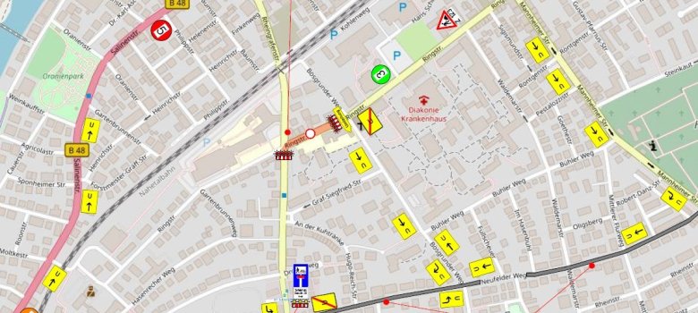 Die Sperrung zwischen Bösgrunder Weg und Rheingrafenstraße bleibt bestehen. Entsprechende Hinweisschilder werden aufgestellt beziehungsweise bleiben bestehen.