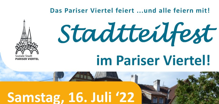 Das Quartiersmanagement des Pariser Viertels freut sich auf einen vollen Tag und darauf, den neuen Oberbürgermeister und Schirmherr des Festes, Emanuel Letz, im Pariser Viertel begrüßen zu dürfen. Ein herzlicher Dank gilt auch der GEWOBAU, die das Fest finanziell unterstützt.