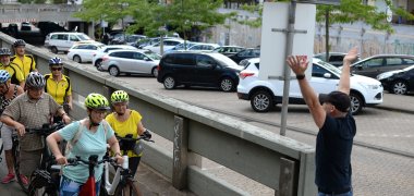 Großes Foto: 66 Stadtradlerinnen und Stadtradler waren bei der Innenstadtrundfahrt zum Auftakt dabei.