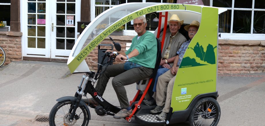 Wie bekannt Kurth Theurich in Bad Münster ist, zeigte sich schon auf den ersten Metern. Erkannt und herzlich begrüßt wurde er von Spaziergängern. Die Rikscha musste immer wieder mal anhalten, weil Gäste und Chauffeur mit Gefährt fotografiert wurden.