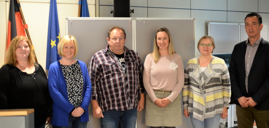 Foto: OB Emanuel Letz (rechts) gratulierte zum Dienstjubiläum: Denise Kuhn, Christine Maurer, Hans-Peter Meisenheimer, Fene Anton und Swetlana Wilbert (v. l.).