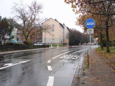 Fotos: Ansichten der neuen Busspur auf der stadteinwärts führenden Fahrbahn der Gensinger Straße