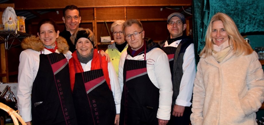 Foto: OB Emanuel Letz mit den Köchinnen und Köchen der Neuruppiner Kochakademie sowie Christine Simmich, Städtepartnerschaften und internationale Beziehungen (rechts), und Magdalena Yanshin (links).