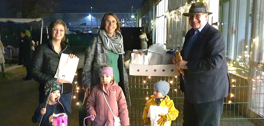 Foto: Symbolische Übergabe der Weckmännchen für alle Kitas im Stadtteil Süd-Ost an Silke Behrend, Leiterin der Kita Rudi