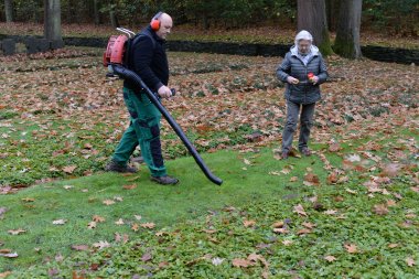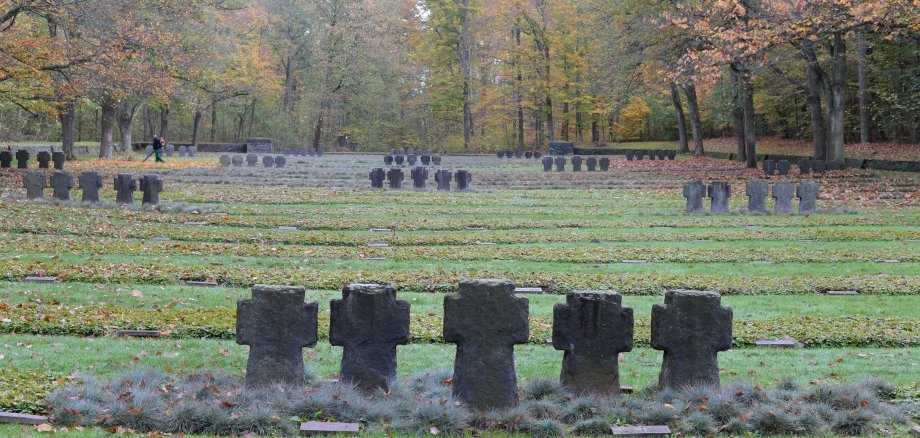 Der Monat November ist eine Zeit der Trauer, der 13. November (Volkstrauertag) und der 20. November (Totensonntag) sind hohe Feiertage. Die Wochen vorher sind für Steffen Büsselberg sehr arbeitsreich. Dafür sorgt der Herbst. Mit dem Laubbläser und Geschick wirbelt er die Blätter über die Mauer in den Wald, zuweilen kämpft er gegen den Wind, dem er aber überlistet, indem er mit seinem Gebläse einen Richtungswechsel vornimmt. Außerdem wird der Rasen gemäht und die Gedenksteine gesäubert und von Unkraut freigeschnitten.