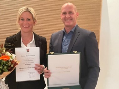 Großes Foto: Innenminister Roger Lewentz zeichnete Tina Franzmann mit der Freiherr-vom-Stein-Plakette 2022 aus. Copyright: MdI RLP/Thomas Frey