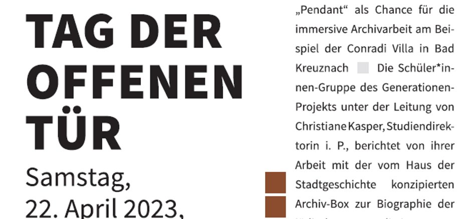- Die Schüler*innen-Gruppe des Generationen-Projekts unter der Leitung von Christiane Kasper, Studiendirektorin i. P., berichtet von ihrer Arbeit mit der vom Haus der Stadtgeschichte konzipierten Archiv-Box zur Biographie der jüdischen Journalistin Margot-Pottlitzer-Strauß aus Bad Kreuznach.