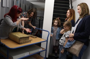 Großen Andrang bei den Führungen von Sarah Förster. Es öffneten sich die Türen zu den vier Magazinen im Keller und im Obergeschoss, die den Nutzern des Stadtarchivs ansonsten verschlossen bleiben: jahrhundertealte Urkunden, antike Bücher mit Metallschnallen, Postkarten vom 1. Weltkrieg, Tageszeitungen aus dem letzten Jahrhundert und natürlich Dokumente und Akten aus der Stadtverwaltung: der Bestand ist enorm vielseitig.