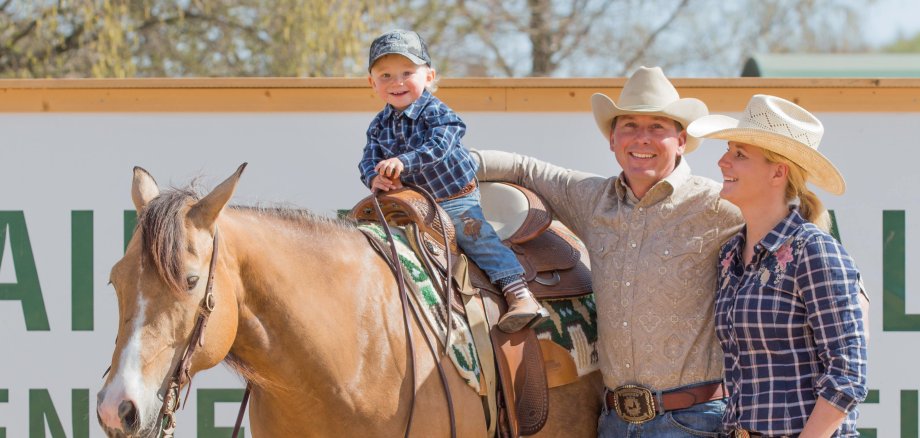 Foto oben: Ein Bild aus glücklichen Tagen. Die Eltern des kleinen Willi, Etienne und Pola Hirschfeld, betreiben auf dem ehemaligen Neuruppiner Flugplatz eine Ranch. Foto: Privat
