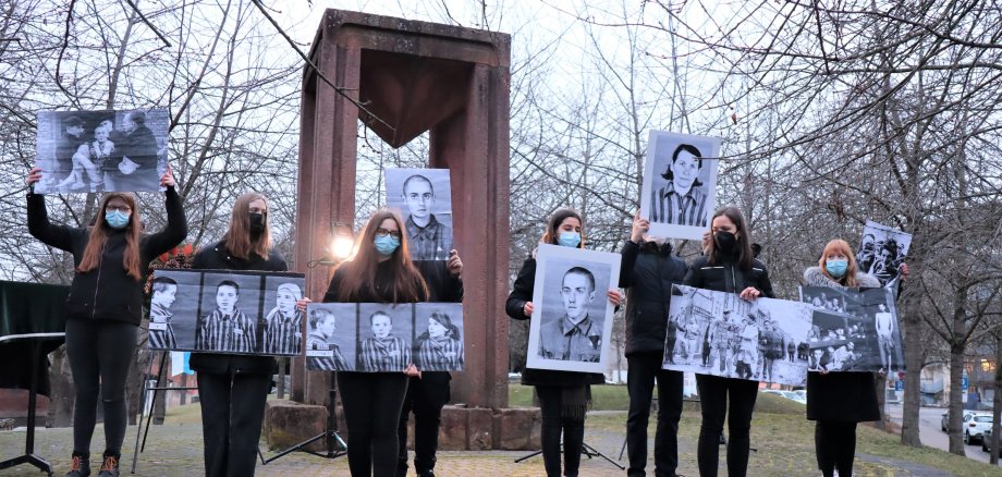 Das Gedenken wird mitgestaltet von Schülerinnen und Schülern der IGS Sophie Sondhelm sowie Fryderyck Jona (Saxophon).
