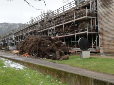 Hier mussten die Schlehenbündel komplett ausgeräumt werden, weil die Dornen altersbedingt aus der Wand brachen. Geprüft wird sowohl die Holzkonstruktion als auch der Betonunterbau, der nur auf diesem 40 Meter langen Stück vorhanden ist. Aus der Expertise externer Gutachter werden dann Maßnahmen – etwa der Austausch von Holzbalken – abgeleitet, die je nach Möglichkeit und Umfang noch in diesem Jahr umgesetzt werden sollen. Zum Abschluss wird die Bedornung dann auch in diesem Teil bis zum Frühjahr 2024 beidseitig komplett neu eingebaut. Mit Abschluss der Maßnahme werden auf 280 Metern zirka 45.000 Dornbündel manuell verbaut worden sein. Die Gesamtkosten werden - ohne die noch nicht absehbaren Sanierungsnahmen – bei in etwa 770.000 Euro liegen.